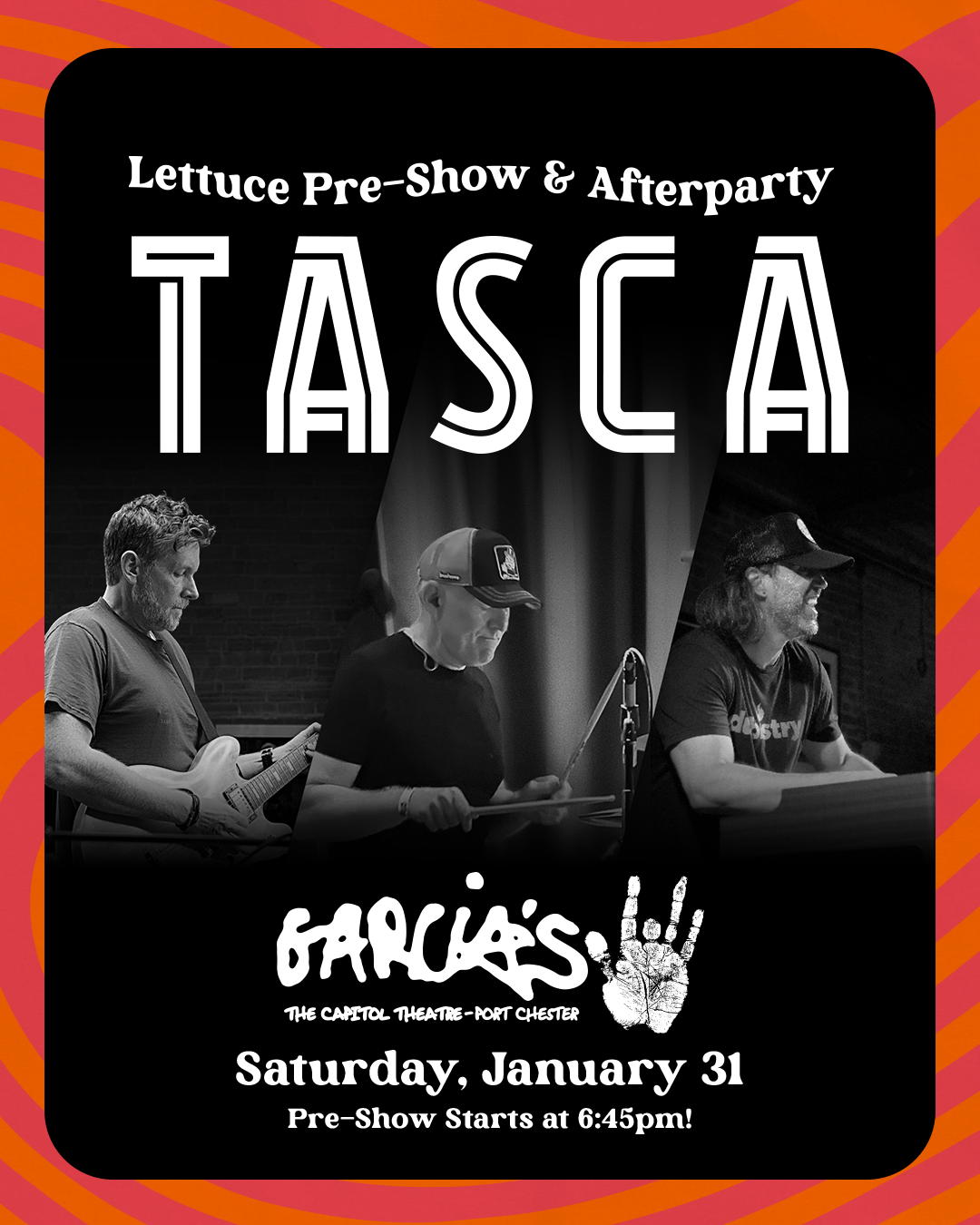 TASCA is a NY-based instrumental groove trio featuring Joe Colgan on guitar, Rich Monopoli on drums, and Todd Nocera on organ. Named after the Italian word for “pocket,” TASCA redefines the organ trio, with a focus on infectious songwriting and dynamic interplay. Their sound blends original funk, soul, and simmer into a signature vibe that’s both sophisticated and irresistibly danceable.